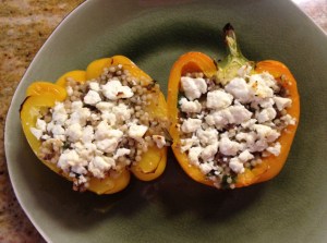 Turn pepper halves over; fill each with about 2/3 cup lamb mixture. Sprinkle feta cheese evenly over filling. Bake until cheese is slightly melted, 3 to 5 minutes. Transfer peppers to a platter.