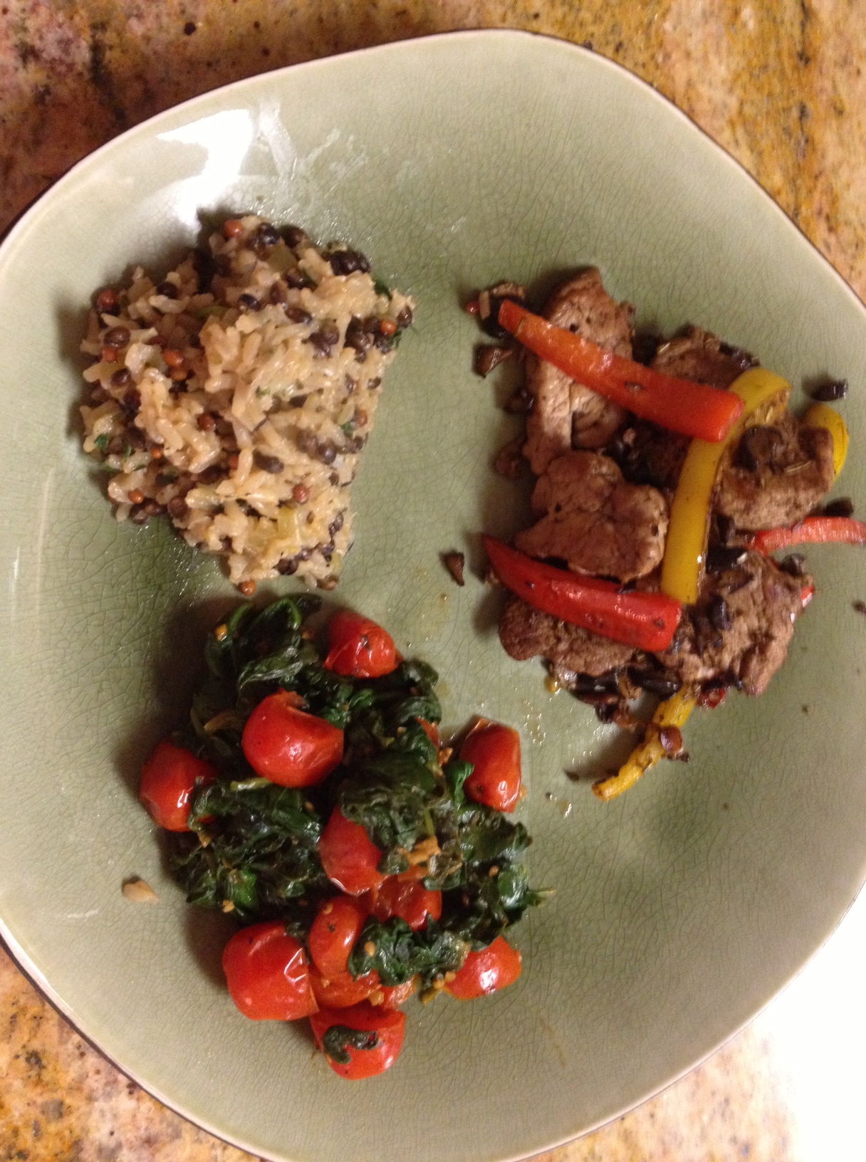 This is a recipe I got from Cooking Light a year or so ago, and I’ve made it a couple of times now – it’s a great weeknight meal by itself or you can dress it up with some sides. The recipe below is as printed, though I do not like anchovies very much and I substitute a handful of chopped black olives in their place with much success. I served this with sides of Spinach and Tomatoes and Herbed Brown Rice Pilaf.