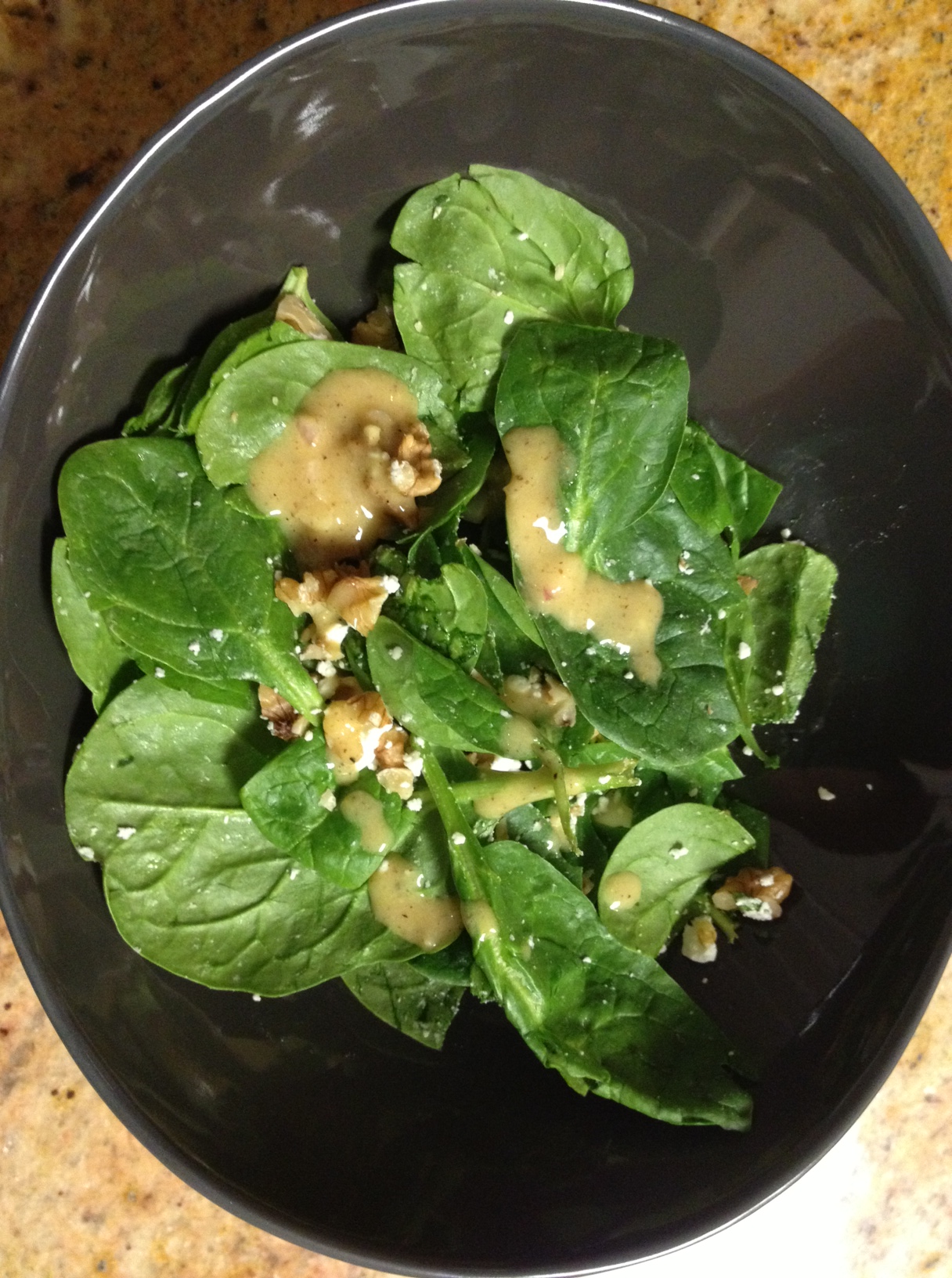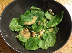 Great side salad that you can adjust however you like. I’ve used walnuts, hazelnuts, cranberries, goat cheese, feta, etc. I do prefer that the oil used in the dressing go with the nuts, but you could play with that as well.