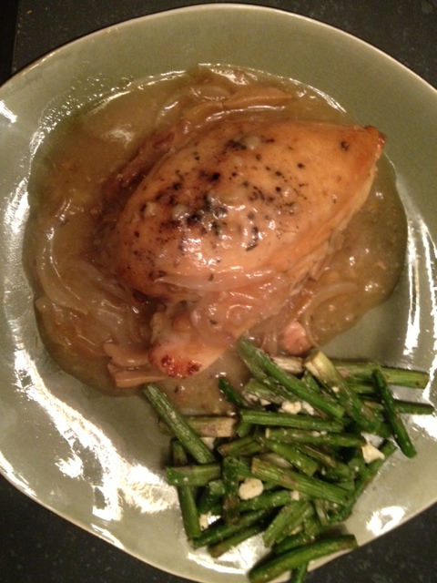 This was a very simple dinner in the slow cooker that tasted like it was far more work than it actually was. We really liked it; I didn’t make any changes to the original except to use split breasts only. Next time I might throw in some thighs or drumsticks, but just the breasts were excellent – very tender and flavorful. I think bone in is necessary to the flavor, and we just removed the skin before eating. I served this with asparagus for a very, very filling dinner. I originally got this recipe from a website called Recipegirl, and will definitely to back to see what else she’s got!