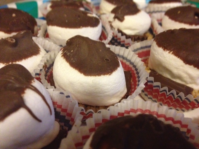 Who doesn’t love s’mores? Admittedly, I don’t really like chocolate. But I’ll eat it in this form…especially because I’ll hoover any marshmallows in sight. These was a cute and easy recipe that was handy for something like a party or cookout, because it was very mobile. Also bite size, so you can eat more and not feel guilty, right? Right. 😉