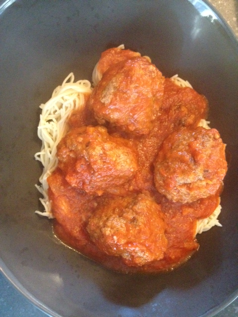 We don’t do pasta very often, but I really, really love spaghetti and meatballs. I made these guys with my usual Classic Tomato Sauce and it came out well. I cooked 3-5 meatballs in the sauce and baked the rest, which worked out well for us since I didn’t bust out the huge stock pot this time. I have a long-standing meatball recipe I have used (along with my Uncle’s stock pot!), but modified it a bit this time using an Ina Garten recipe and was pleased. Great, tender meatballs…makes about 12-15 of them, unless you like big ones.