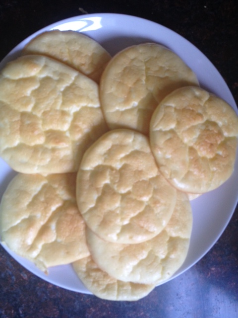 So “bread” is going out on a limb for these guys, but they *are* pretty good. As someone who craves bread, I don’t think that they make a great substitute, but they were good as replacement flatbread for dipping, etc., and we also thought that a very flavorful burger would do well with them. I think if you added some herbs or a little cheese, they make good snacks – they’re pretty tasty on their own. They also could make a decent crepe substitute with some berries, etc. This recipe is all over the interwebs, but I believe I got them from somewhere on All Recipes.