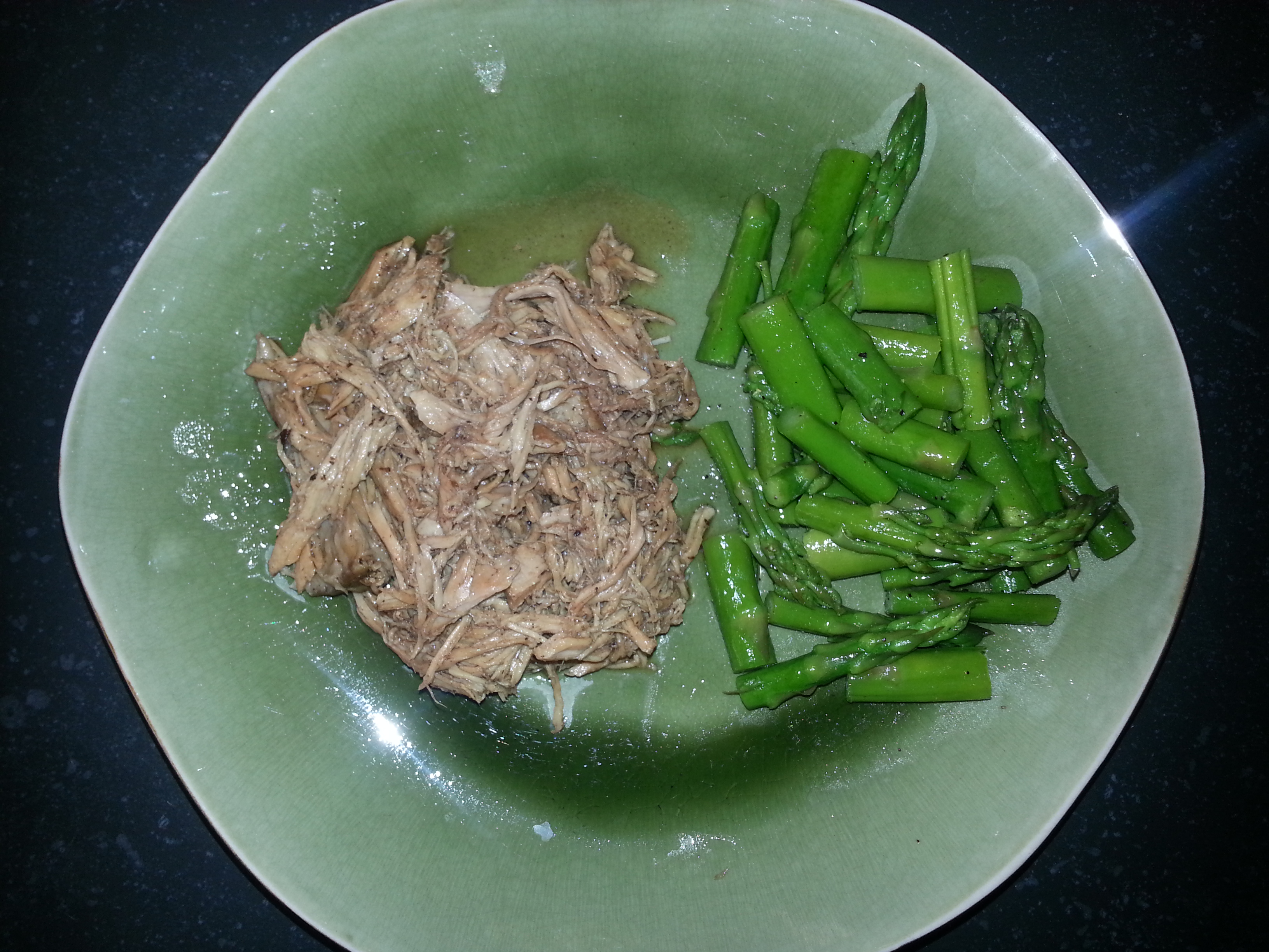 This wasn’t a bad crock pot recipe, and is worth trying again. It originally came from Skinnytaste, and needed some extra seasoning. But through no fault of the recipe, I managed to grab the wrong kind of roast by accident. So it was a lot saucier/more watery than originally intended. If I hadn’t been so lazy, I probably would have bothered to thicken the sauce, but it was fine as is. Definitely has potential with more seasoning – I think some veggies in with the roast would be great as well. We served this with steamed asparagus.