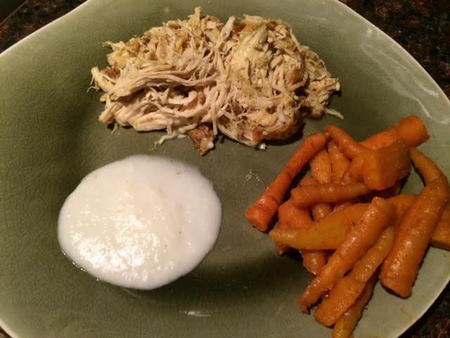 So I’m not going to lie…I was skeptical about this one. Shawarma in the slow cooker? But we love the dish, and with a crazy horse show schedule, wildness at work, life, and the universe, the slow cooker is our friend right now. So we gave it a try and were pleasantly surprised! This is not traditional shawarma, but it is a close approximation in the flavor category. We gobbled it up for sure. We made this with toum and Moroccan spiced steamed carrots (our own from the garden!) as a side – pretty delish dinner! I’d do this one again with very little tweaking beyond double the amount of chicken at the start for more leftovers, and decrease the liquid a hair. I might also try bone-in chicken next time for a bit more flavor.