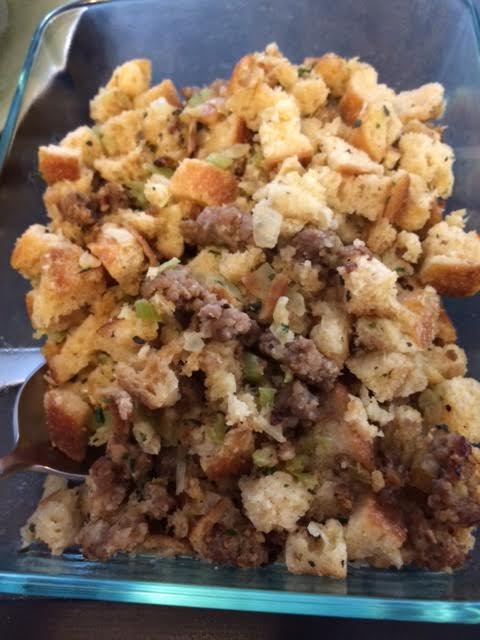 This is my absolute favorite stuffing recipe, and I don’t know why I’m just now getting around to posting it…I make it every year! Probably pretty much my favorite thing at the Thanksgiving table. This is a Cooking Light recipe from eons ago, and the only thing I ever changed about it was to use all chicken stock instead of half stock/half water. Well, and to change up the sausage…hot Italian is awesome with this, but so are various herb sausages…you really can’t go wrong. I will say to be careful of the moisture level – it’s very dependent on how large a loaf of bread you use, etc. I usually find I only need 2 cups, but you can go up to 3…I also like a slightly crisper stuffing. Can’t say enough good things about this one!
