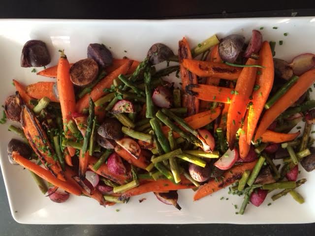 This was a very pretty side dish for Easter. Roasted veggies are always great, and I really liked the touch of white vinegar. This is a Cooking Light recipe, and the only alteration I made was to use baby purple potatoes instead of fingerlings, and to lower the cooking temp to 400 to accommodate other dishes I had cooking (it was originally 500, which seems pretty high to me). We enjoyed this and the leftovers also make a nice lunch.
