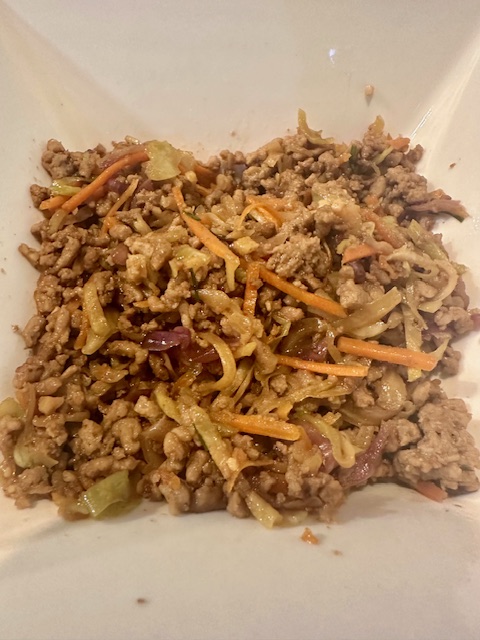 I found this on Delish, and loved the concept – egg rolls are one of my favorites, but almost impossible to find one that fits all of my diet restrictions. Super easy to make a bowl version, though, and turned out that it was awesome. We both loved it, great to use up some ground pork we had on hand, and if you’re after low-carb, this would work well for that. You could easily use ground chicken or turkey in this as well. Being a bowl, it’s super easy to customize – add mushrooms, celery, different sauces, etc.