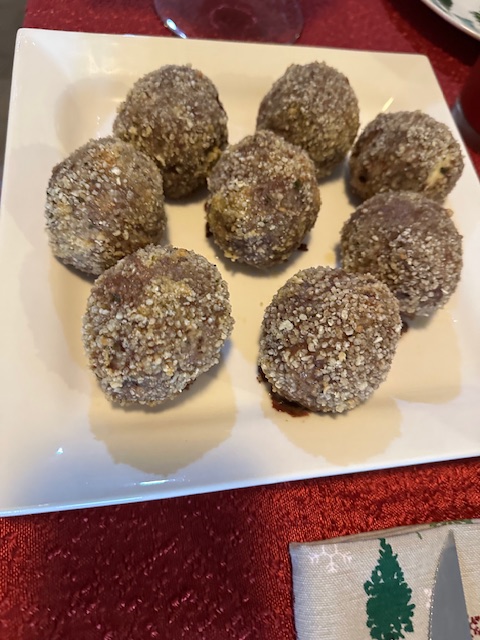 Scotch eggs have always been one of my favorites, particularly at the Renaissance Faire, and I don’t know why it never occurred to me to try to make this sooner! They were a great addition to Christmas brunch. Don’t make the same mistake I did and hard boil the eggs – these are baked, so they will be cooking longer, and the texture of the yolk was a bit off because hard boiled became VERY hard boiled. 😉 Consider 8-10 minutes for this.