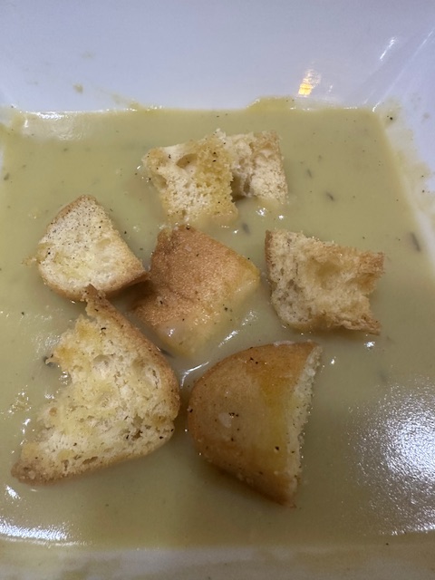 This is such a great, easy spring soup (and one of the few potato-based soups I like!). I like to serve it with large croutons and a sprinkle of shredded parmesan. You could also add cubed ham as well for a little more substance, but this is great as is with a salad as well. This is a New York Times recipe that I modified slightly to cut the dairy.