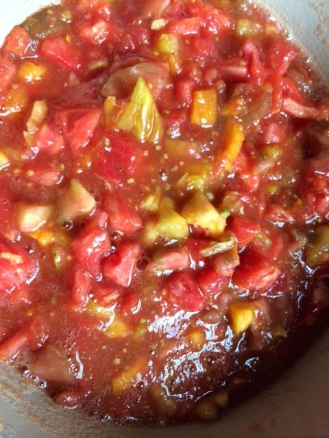 Our San Marzanos took a long time to mature this year, but when they did, it was on! This recipe requires 20lb of tomatoes, and I was about 5lb shy so I threw in some sweet lemon boys I picked up at the store. I thought they would go well together. This is a versatile, every day tomato sauce for pasta, pizza, or anything you like.