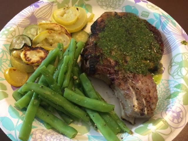 Chimichurri is one of my favorites, and when we were trying to think of something to do with some nice pork chops on the grill, it sounded perfect. Especially given the plethora of parsley in our garden. This was great with the simple brined pork chops with a side of green beans and squash from our garden. Very summery! Got this from Chow and made it as written (except I was out of fresh Oregano, so used dry).