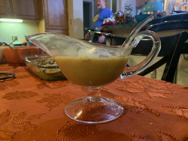 Soon after we moved to the farm, we changed to hosting an open house, buffet style Thanksgiving. We love entertaining, and is there a better holiday for cooking in bulk than turkey day? That said, I was suddenly struggling with the timing of everything, and began trying to figure out what I could make ahead of time. Gravy was one of the first things to get done before the big meal – and with this method, I had stock to use on Thanksgiving itself. I’ve made gravy this way ever since!