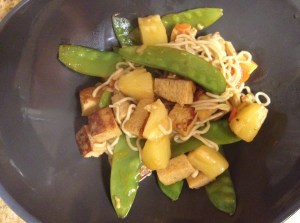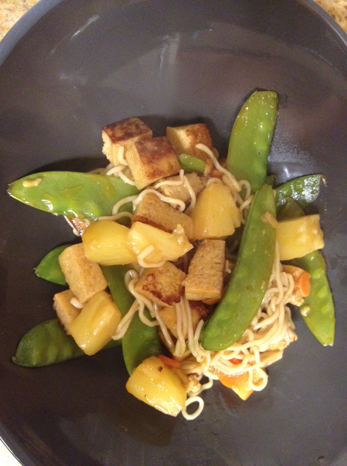 This was my first attempt at cooking tofu, and I really liked it. Having read some articles about preparing the tofu first, I froze it and think next time I will skip that step; I didn’t love the spongy texture. I will definitely make it again, but next time will ramp up the garlic, ginger, and red pepper flakes for a little more flavor. This recipe comes from Eating Well magazine. I added a few extra veggies I had in the fridge.