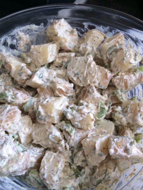 Potato salad is definitely a go-to BBQ side, and even though I am really not a fan of potatoes, I recognize most people do not agree with me. 😉 We had a BBQ last weekend to showcase Shawn’s foray into the world of brewing his own beer, and he also made his awesome wings. Of course a classic potato salad was a given with that. This is an Ina Garten recipe, I didn’t change anything, and the dressing was excellent. Definite winner.